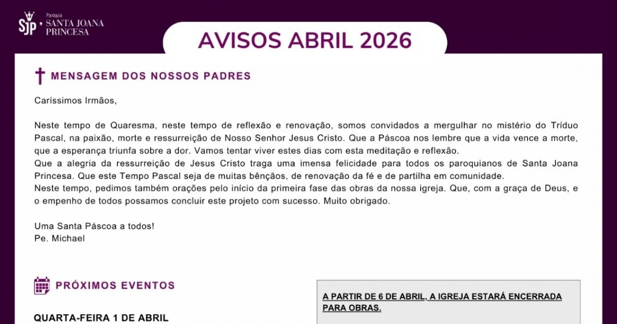 Neste tempo pascal, somos convidados a continuar o caminho de fé, renovação e encontro com Deus, através da oração, da formação e da vida em comunidade.