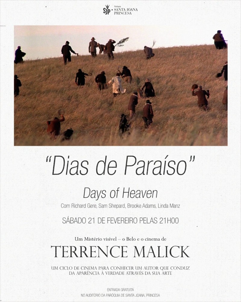 No próximo sábado, 21 de fevereiro, às 21h00, teremos a sexta e última sessão deste ciclo, com a exibição do filme “Dias de Paraíso” (Days of Heaven).